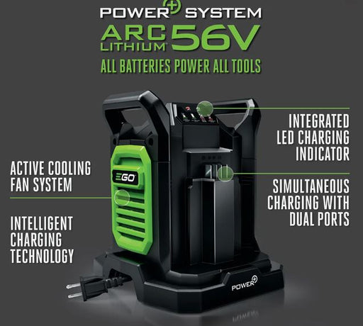 View full detailsEGO POWER+ Dual Port Charger – CH2800D – Simultaneous Charging for 56V ARC Lithium™ Batteries with Smart Cooling and Fuel Gauge